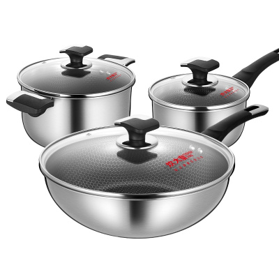 炊大皇大理纹三件套炒锅32汤锅24+奶锅18DLW321824