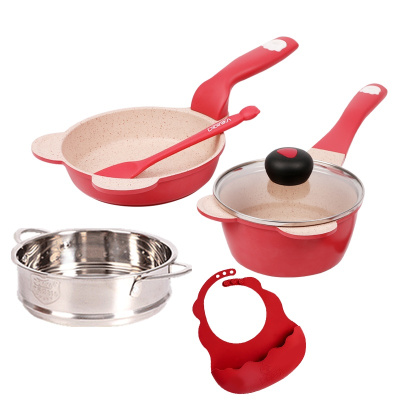 迪迪尼卡(Didinika)新品憨憨熊婴儿辅食锅宝宝蒸锅煮锅煎锅多功能一体锅 红色