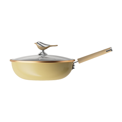 火象鸟语花香珐琅炒锅 浅黄色 32cm/个
