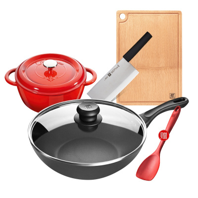 双立人(ZWILLING) 中式家用厨房炒锅套装不粘炒菜锅汤锅炖锅奶锅珐琅铸铁锅硅胶铲组合