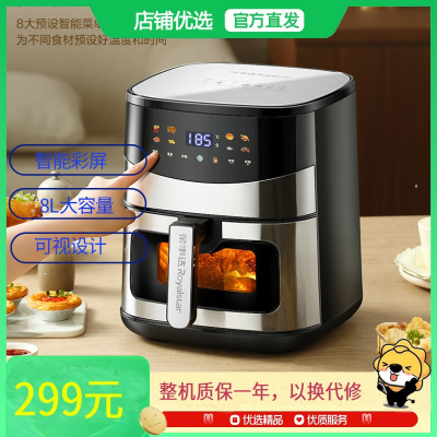 荣事达(Royalstar)空气炸锅不用翻面8L实用大容量蒸汽嫩炸烤箱一体机炸蒸烤多功能锅金属内腔RS-AF529D