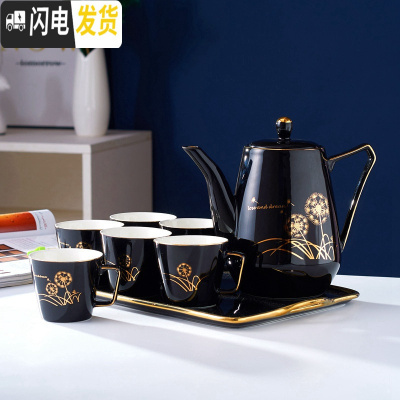 三维工匠北欧陶瓷泡茶具茶壶茶杯套装家用现代简约客厅送礼品轻奢水杯水具 黑色蒲公英