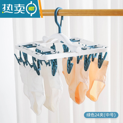 敬平内衣袜子夹晒衣架多功能防滑防风多夹子晒晾袜子器折叠衣架子 蓝色24夹(中号) 1个衣夹