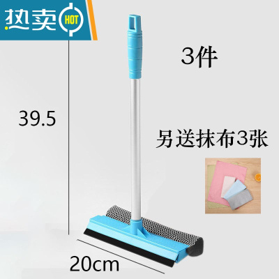 敬平长柄多功能玻璃擦刮高层双面擦窗器可伸缩玻璃刷家用清洁窗户擦 铝合金款蓝色3套特惠装擦玻璃器
