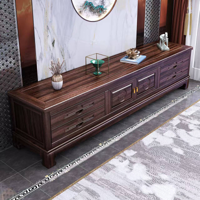 青木川 新中式乌金木实木电视柜落地2024新款客厅卧室小户型收纳柜加高款 雕花仿古榫卯整装置物架
