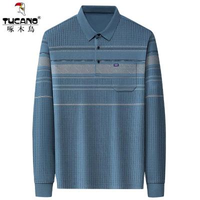 啄木鸟2025春秋季长袖T恤翻领带口袋男士中老年爸爸装上衣polo衫