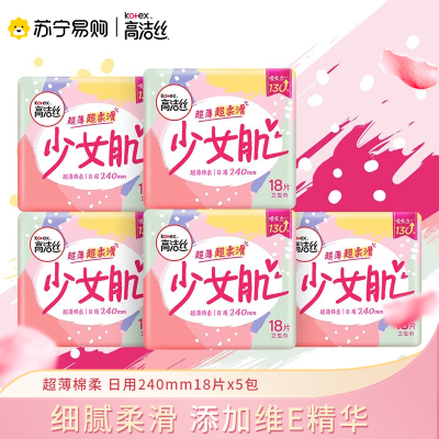 高洁丝日用少女肌240mm×18片超大吸收棉柔纤巧亲肤卫生巾姨妈巾 1件装