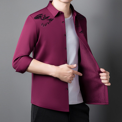春秋季男式长袖衬衫免烫休闲男装植绒衬衣男