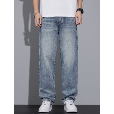 潮牌痞帅简约高端牛仔裤男士青年宽松休闲抗皱舒适直筒裤男装