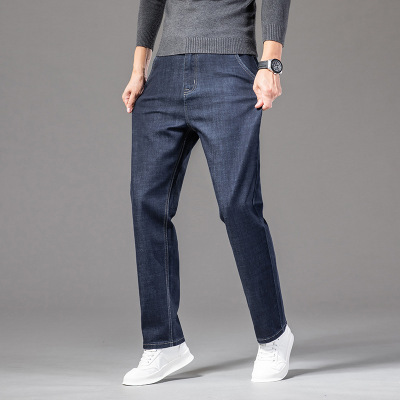 秋冬新款加绒保暖牛仔裤男弹力百搭修身直筒裤时尚男装休闲裤