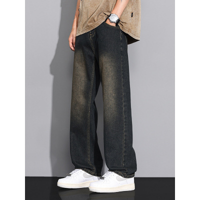 新款怀旧复古牛仔裤男直筒街头时尚潮牌简约百搭休闲通勤男装耐磨