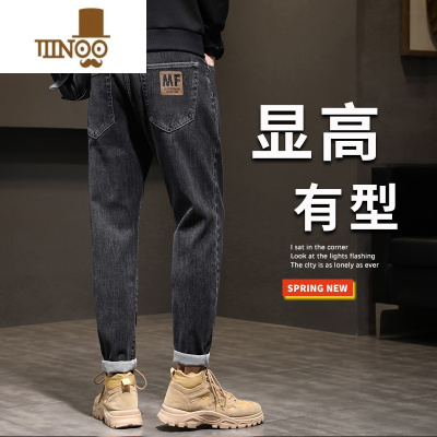 春秋牛仔裤男士简约潮牌百搭新款宽松直筒哈伦休闲长裤子男装