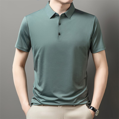 桑蚕丝男翻领冰丝棉短袖t恤2024夏季商务休闲男装针织半袖polo衫