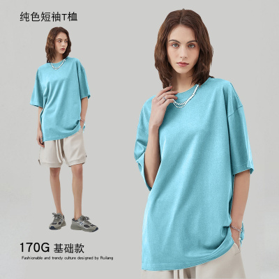 男装短袖T恤170g酷丝棉汗布夏季潮牌多巴胺纯色宽松T恤男厂家