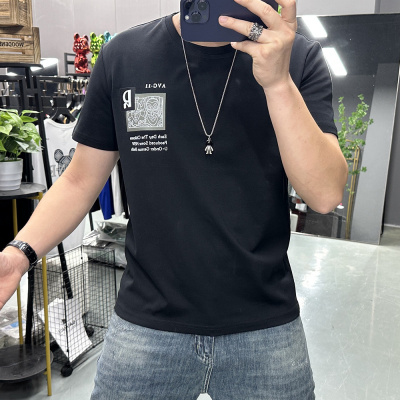 夏季新款短袖T恤男装上衣丝光棉修身圆领半袖抖音时尚打底衫