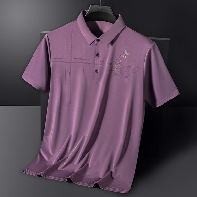 夏装短袖T恤男冰丝男士POLO衫商务休闲薄款上衣压钻潮中老年男装