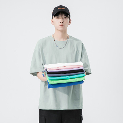 260g重磅加厚精梳棉短袖T恤男装夏季落肩圆领打底衫