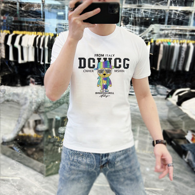 夏季新款欧货字母印花烫钻圆领短袖修身潮流帅气男装半袖T恤