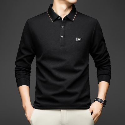 男士翻领新款长袖T恤春秋季纯色宽松休闲潮流中青年男装打底衫