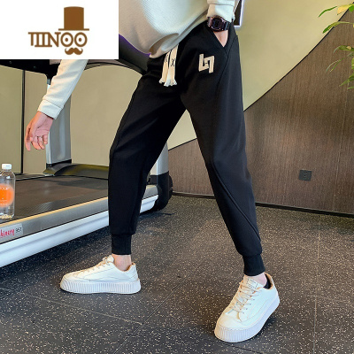 YANXU男士时尚潮牌休闲裤潮流百搭刺绣拼接束脚运动裤痞帅卫裤九分裤子