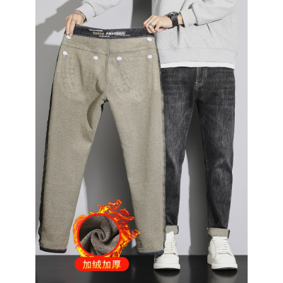 男装牛仔裤高端春秋款品质抓毛休闲裤男士舒适舒适百搭直筒裤男生