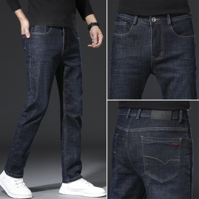 秋冬季弹力牛仔裤男士宽松直筒大码中青年男装百搭商务休闲裤子男