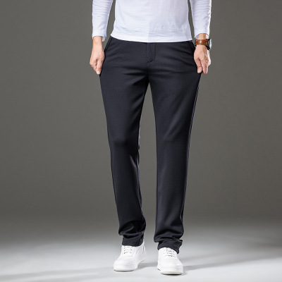 广州男装修身小直筒弹力休闲裤男中青年英伦常规款常规高腰男裤子