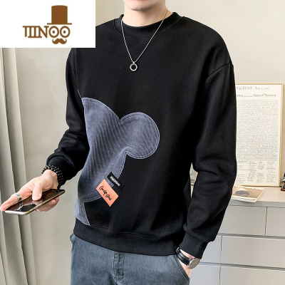 YANXU男士时尚休闲棉质套头卫衣大码男装圆领长袖t恤打底衫潮