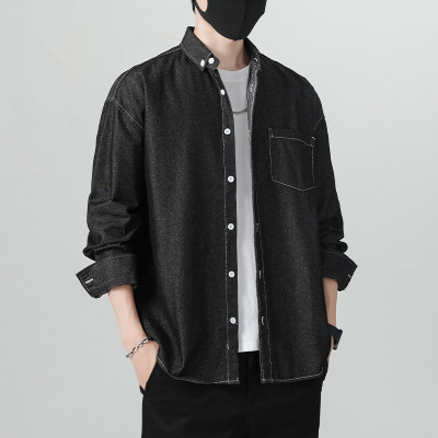 男装牛仔长袖衬衫男士春秋季新款时尚透气复古休闲免烫衬衣潮外套