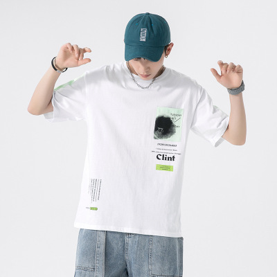 男装夏季新款男士短袖T恤港风潮牌ins纯棉打底衫圆领百搭半袖T恤