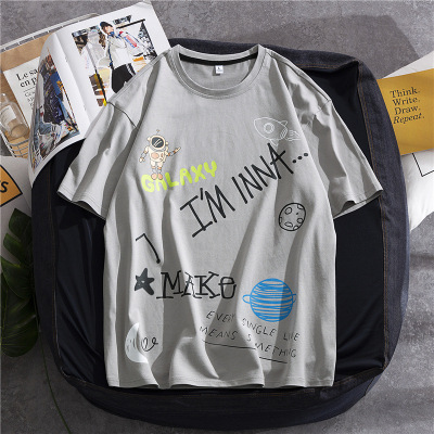 男装短袖T恤2025夏季新款韩版潮牌宇航员印花纯棉打底衫半袖体恤