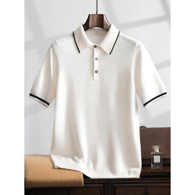 山羊绒短袖25春秋新款男装翻领T恤针织衫毛衣商务休闲半袖POLO衫