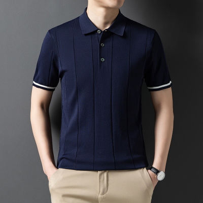 夏季翻领无痕短袖T恤男士竖条纹休闲polo衫男装潮流薄款冰丝半袖