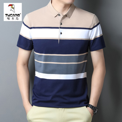 啄木鸟爸爸夏季短袖t恤中年人男装上衣中年男士休闲条纹polo衫潮