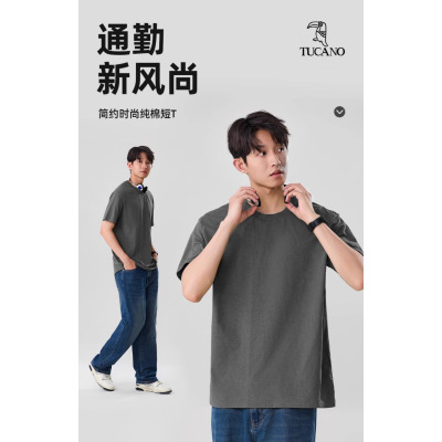 啄木鸟短袖男夏季纯棉男装t恤新款男士宽松体恤纯色男生半袖衣服Y
