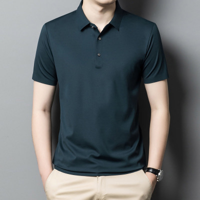 桑蚕丝夏季无痕桑蚕丝短袖t恤真丝男装翻领纯色冰丝半袖宽松polo