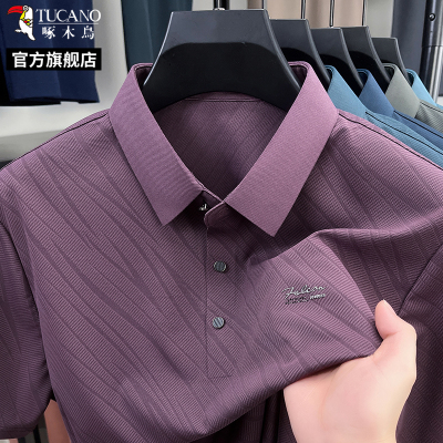 啄木鸟夏季2025新款薄款男士短袖t恤冰丝大码爸爸翻领POLO衫男装C