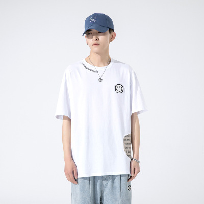 男装夏季新款男士短袖T恤韩版潮牌笑脸纯棉半袖T恤百搭学生打底衫