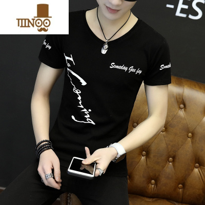 YANXU2023夏季新款短袖t恤V领韩版修身潮流个性长袖男装夏天百搭衣服丅