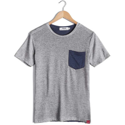 VaLS 男装时尚撞色拼接个性口袋圆领短袖T恤休闲纯色T恤010300053(灰色/XL)