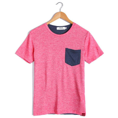 VaLS 男装时尚撞色拼接个性口袋圆领短袖T恤休闲纯色T恤010300053(红色/L)