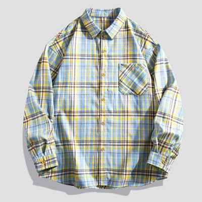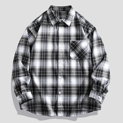 男装潮牌衬衫复古春秋新款日系男士时尚潮流休闲格子衬衣长袖外套