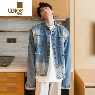 YANXUCHICRO西西里男装毛边设计牛仔外套男韩版潮流休闲夹克上衣春季