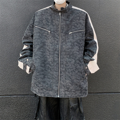 春秋季新款长袖垫肩立领机车夹克情侣款美式复古夹克潮流男装外套