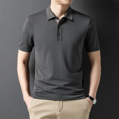 免费试穿夏季纯色桑蚕丝短袖薄款t恤男士翻领针织polo衫男装商务