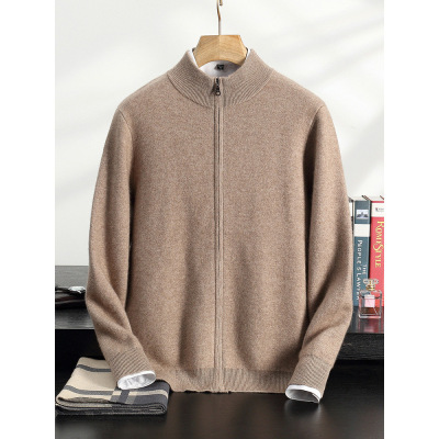 加厚羊绒衫男装保暖开衫外套半高领羊绒毛衣秋冬新款开衫外套