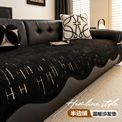 异形沙发垫冬季加厚毛绒新款直排沙发盖布高级感固定防滑坐垫