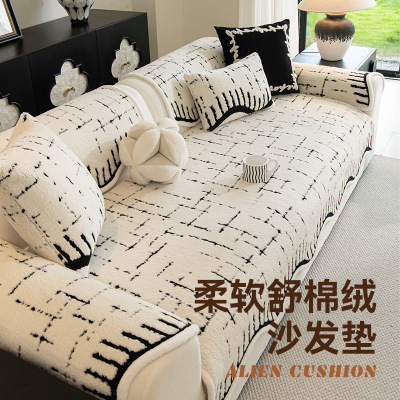新款冬季毛绒沙发垫子高级感加厚保暖固定防滑一片式直排坐垫