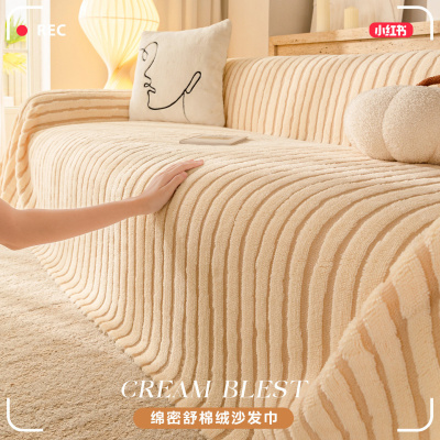 季新款加厚毛绒沙发巾冬高级感奶油风客厅坐垫布一片式全盖毯套罩