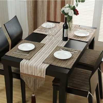 欧式餐桌桌旗茶几餐垫装饰布桌巾电视柜西餐桌棉麻隔热垫碗垫鞋柜 桌旗浅咖拼咖黄尖 桌旗32*240cm